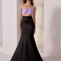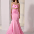 For the girls who want to look undeniably chic, meet this sleek satin party dress. The strapless cut-out bodice adds a modern edge, while the bow detail brings playful, elevated charm. The princess seams draw the eye down the mermaid skirt for an elongated silhouette. Perfect for moments that demand impact.