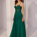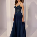 Boho babes can celebrate because we have your perfect party dress. The embroidered bustier bodice featured angled boning and a basque waist for a snatched shape on the A-line silhouette, while the lace-up corset back keeps everything secure. The chiffon skirt has an easy breezy feel with a slit for extra fluttering movement.