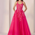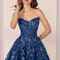 Sculpted, sparkling, and totally unforgettable, this tulle A-line dress brings effortless drama. The strapless cat eye neckline and lace-up corset bodice sculpt the figure, while detachable halter straps and scattered sequin beading add a touch of playful shine. It's made for nights you won’t forget.