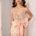 V-Neck Chantilly Lace Party Dress with Detachable Bow Belt