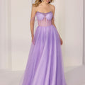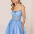 Beaded Corset Sheer Midriff Glitter Tulle Party Dress