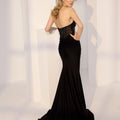 Step into sculpted glamour with this bold sheath party dress. The strapless sweetheart neckline is accented with geometric sequin beading and structured boning, while a plunging center keyhole adds sultry modernity. Draped foiled jersey shapes the skirt for fluid movement and subtle sheen, creating a striking balance between edgy structure and effortless elegance.
