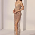 Sheer Linear Crystal Beaded Tulle Party Dress