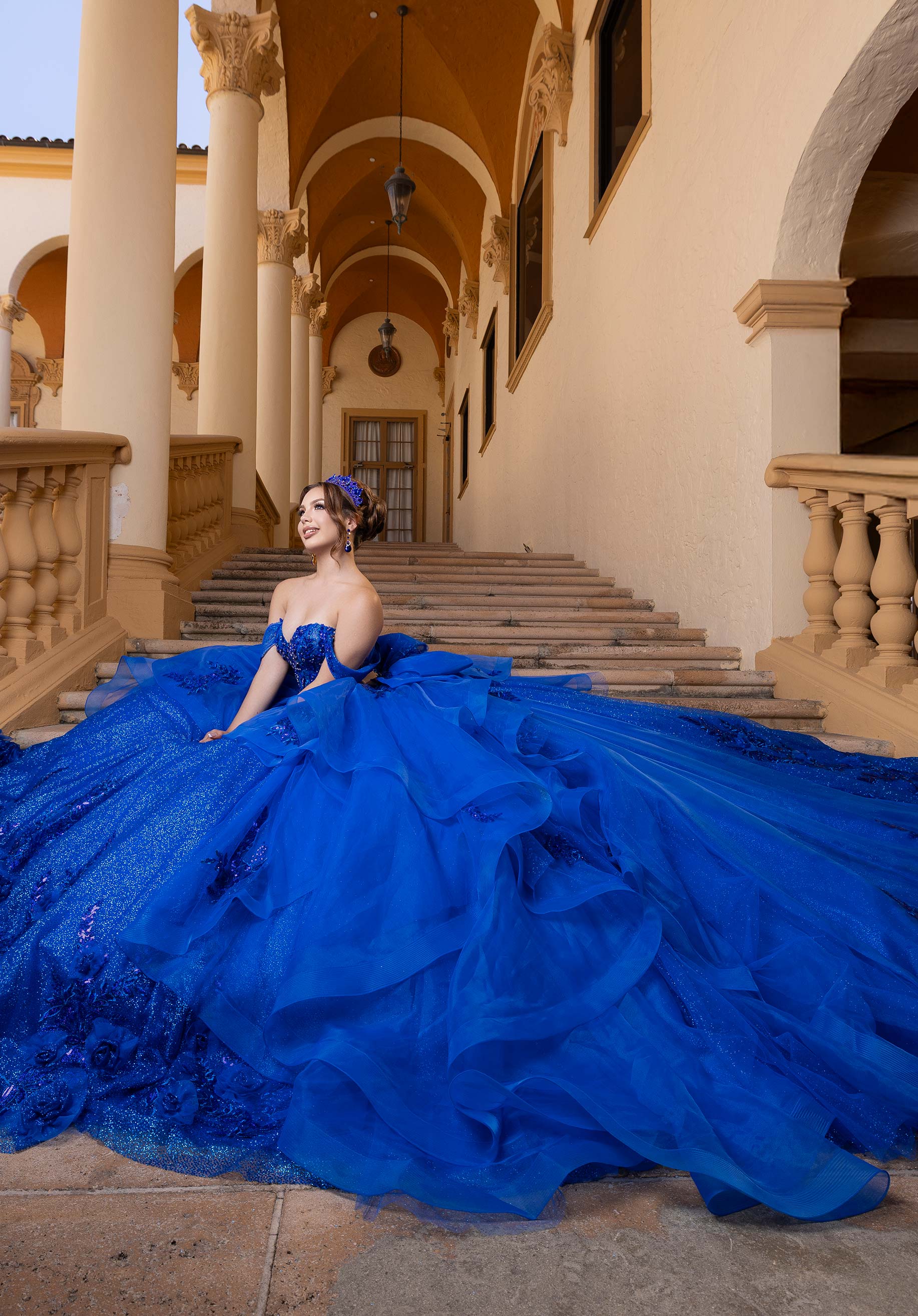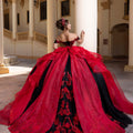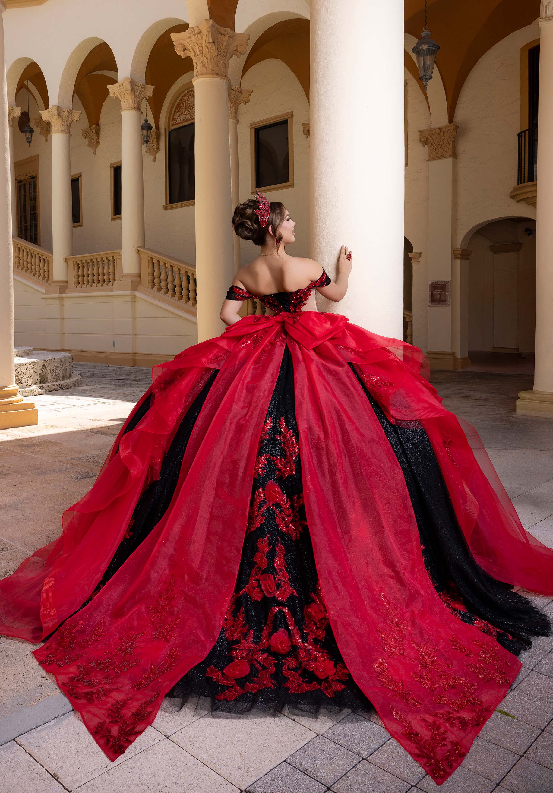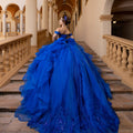 Meet our Beatriz quinceañera dress, a gown that does both drama and fun. A sweeping glitter tulle overskirt, embellished with 3D floral appliqués, floats around you with every step, finished with a crystal-beaded double-loop bow for that extra sparkle. When the party heats up, remove the overskirt to reveal a chic mini dress beneath, complete with a strapless sweetheart neckline, sheer sides, and a beaded lace bodice that shines from every angle. Detachable off-the-shoulder sleeves let you switch up your look, making this a multi-dimensional design made for your big entrance and every moment after.
