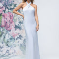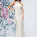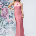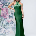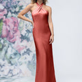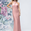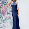 Criss Cross Halter Luxe Satin Sheath Bridesmaid Dress
