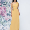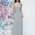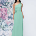 One Shoulder Chiffon Bridesmaid Dress with 3D Floral Details