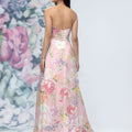 Strapless Draped Floral Printed Organza and Chiffon Bridesmaid Dress