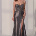 Feminine glamour meets modern sophistication in this fit and flare party dress. The sheer boned bodice, adorned with intricate beaded lace, creates a sculpted silhouette that sparkles with every move. A softly draped sweetheart neckline balances structure with romance, while the shiny jersey skirt flares effortlessly for fluid movement, perfect for making an unforgettable entrance.