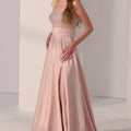 Crystal Embroidered Strapless Bodice on Satin Ball Gown Party Dress