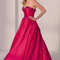 Structured elegance meets sparkling detail. This mikado A-line party dress is designed to flatter and impress. The strapless sweetheart neckline is elevated with intricate 3D hand-beaded trim, while the structured box-pleated skirt adds volume and presence. Finished with hidden pockets for a touch of ease, sophistication with a modern edge.