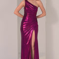Effortlessly modern with a touch of drama, this sheath party dress is designed to flatter and move with you. The asymmetrically draped shiny jersey sculpts the figure, while a one-shoulder neckline adds contemporary elegance. A subtle skirt slit brings movement and a hint of allure, making this dress sleek, sophisticated, and undeniable chic.