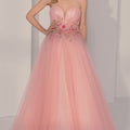 Plunging Sweetheart Floral Embroidered Tulle Party Dress