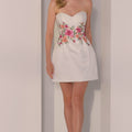 Strapless Floral Embroidered Waist Mikado Mini Dress
